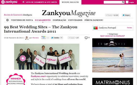 Na Zankyou, Zankyou International Wedding Awards