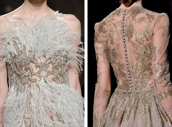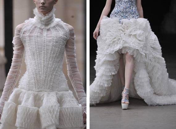Perfeição em forma de pregas, bordados, plissados, tules, rendas, folhos, plumas e muitas e muitas horas horas de trabalho minucioso.