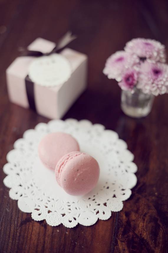 E claro, macarons, cor de rosa também! Se ainda não provaram, têm de o fazer… por fora são estaladiços e por dentro húmidos e consistentes… O sabor é à escolha (eu não resisto ao de caramelo) e estas belezas são da Pinga Amor.