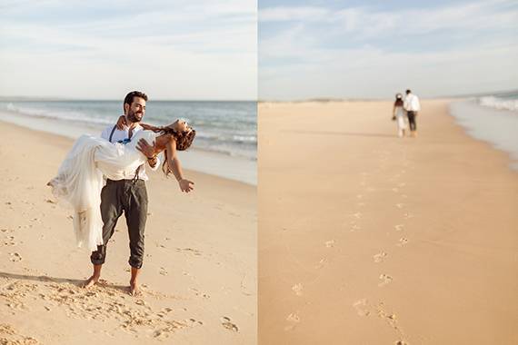 Tudo começou numa viagem que fizemos por Espanha em 2008, durante a qual passámos por San Sebastian. Estávamos a passear junto à praia e o Zé de repente perguntou-me o que eu achava se naquele momento descesse até à areia e escrevesse um pedido de casamento!!! “Estás a brincar??!!” E que tal fazer em vez de perguntar o que eu achava??! A cidade era perfeita, a praia linda, era fim de tarde… e que tal fazer logo o pedido de casamento???