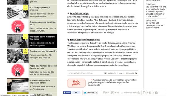 Escusado será dizer que vou casar este ano e o vosso site tem sido uma óptima ferramenta para conhecer fornecedores e, principalmente, uma excelente fonte de inspiração para uma noiva que nunca tinha pensado muito no tema Casamento.