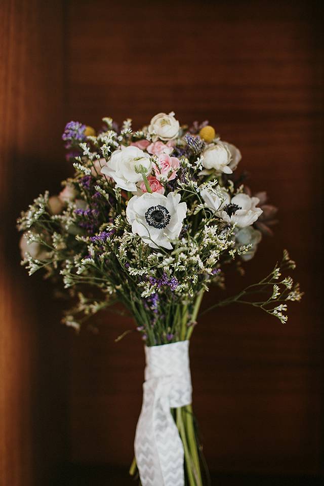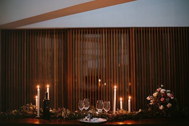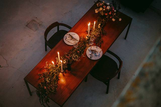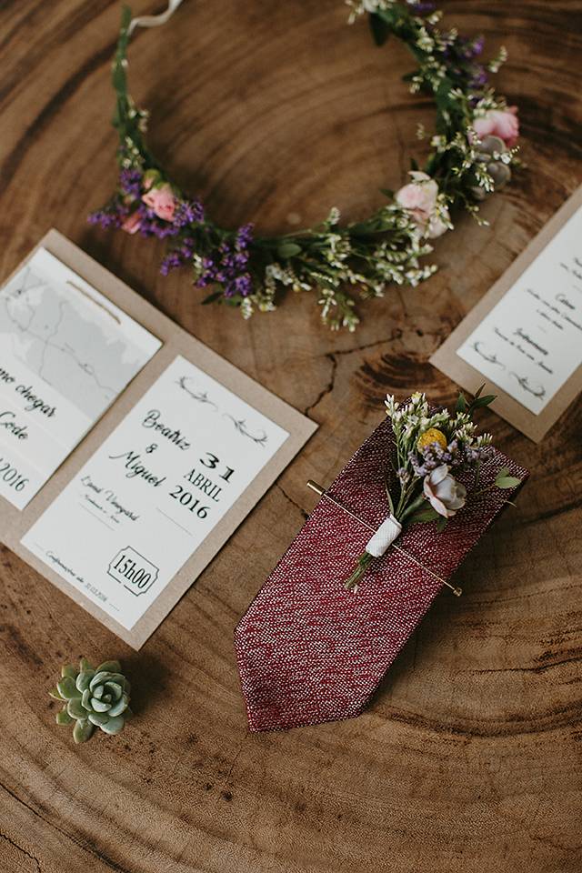 Toda a decoração e styling esteve a cargo da Inspirarte, que contou sempre com a ajuda dos noivos que fizeram questão de meter as mãos em alguns projectos, como o cenário de boas vindas à entrada da quinta – uma carroça de bois com fardos de palha e lenços de Viana –, as bandeirolas que encaminhavam os convidados até à cerimónia, e até o envernizamento das mesas de madeira criadas pelo pai da noiva.