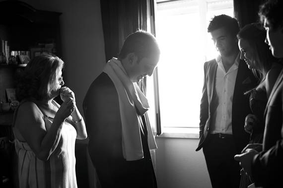 Não há propriamente uma receita… É natural e resulta, claro está, de uma interacção! Apresentamos o nosso trabalho através de reuniões informais em espaços que façam sentido ao casal, o que nos permite entrar em contacto com a sua identidade. A escolha do nosso portfólio visa filtrar à partida as pessoas que se identificam com a nossa abordagem e linguagem fotográfica. No dia do casamento, acompanhamos a preparação dos noivos (desde bem cedo, às vezes), sem direccionar, sendo este o ponto de partida para documentar uma nova estória.