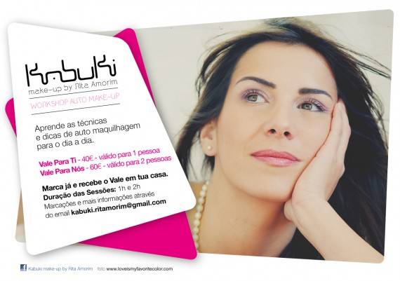 Os Workshops de Auto-Maquilhagem Kabuki Make up by Rita Amorim, ao domicílio, vão mudar para sempre a forma como se vêm ao espelho. Não só aprenderão a maquilhar-se sozinhas como a conhecer as cores e os produtos que mais favorecem o formato do vosso rosto, os vossos olhos, etc.