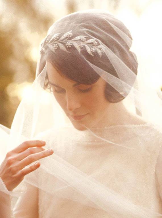 Quando a Lady Mary (finalmente…!) se casou, maravilhei-me com esta preciosa e delicada headpiece, completamente intemporal.